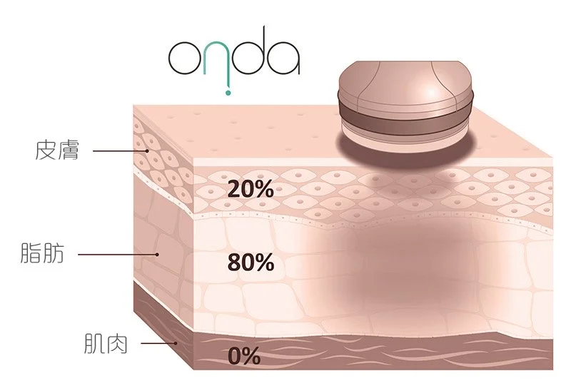 剩下的 80% 能能量穿透脂肪, 穿透達致皮下脂肪組織的更深層。